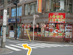 7Turn left at the corner of “上海酒家 (Chinese restaurant)” and go straight a little farther.